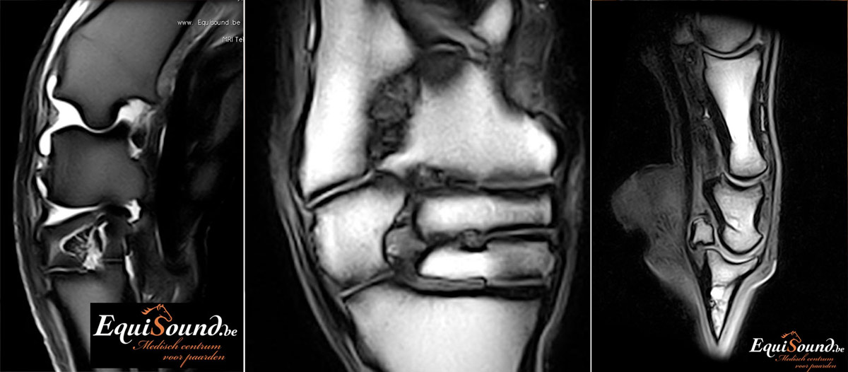 The advanced device at EquiSound allows us to scan a horse both standing and under general anesthesia. This is unique in Belgium. It gives us the possibility to scan every region of the horse from foot to head. This is not possible with devices that can only scan the standing horse. The foot of the horse can be examined on the standing horse. For an MR scan of the other regions, e.g. the stifle, general anesthesia is required, otherwise there is too much movement to obtain good images. When the horse is under general anesthesia, we have the big advantage we can get images of a higher resolution and quality. This way we can better estimate the prognosis for the horse. Thanks to the assisted recovery, your horse will wake up and stand up safely.